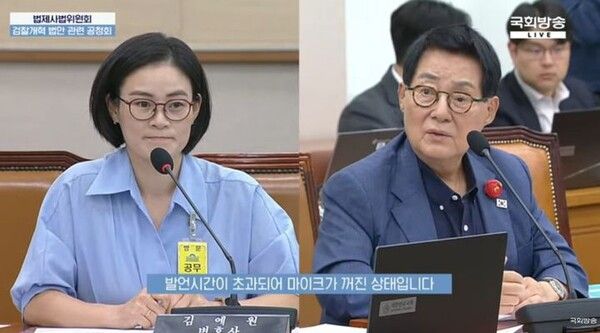 앞서 국회 법제사법위원회는 전날 검찰개혁 4법 공청회를 열었다. 국민의힘 측 진술인으로 참석한 김 변호사는 검찰청 해체 시 발생할 부작용을 우려했다. 당시 박 의원은 "약자 편에 서서 좋은 일을 하는 김 변호사가 마치 정치검찰 개혁에 반대하는 것처럼 말해서는 안 된다"고 했다.