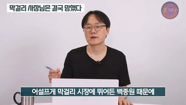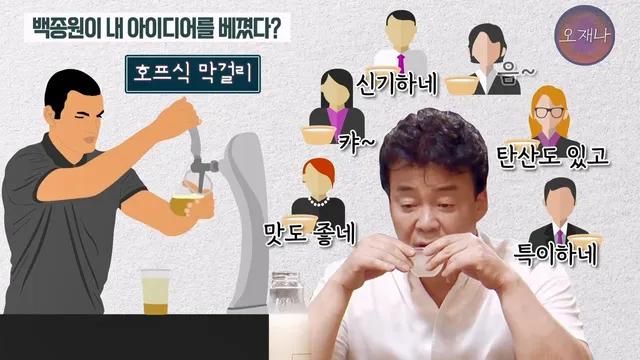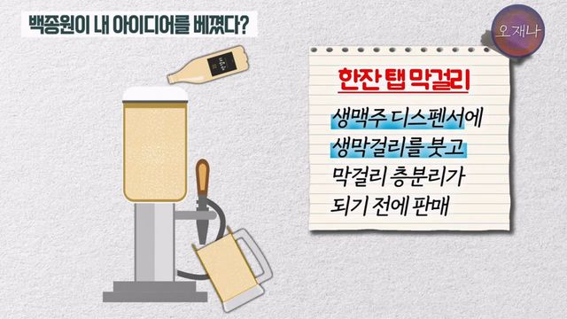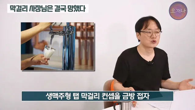 6. 그런데 얼마지나지 않아 백종원이 막걸리를 생맥주처럼 마시는 막이오름이라는 프랜차이즈를 냄