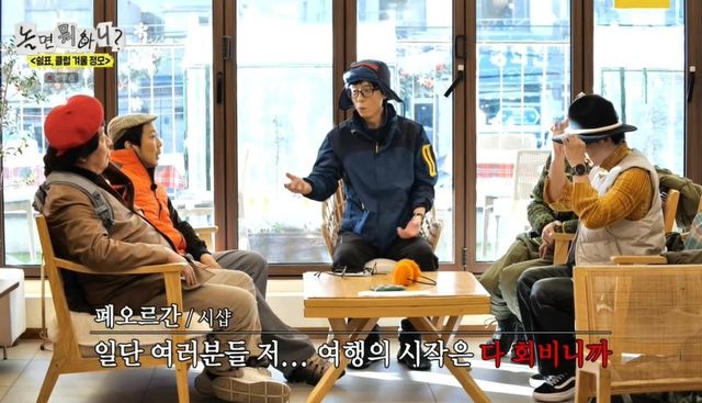 이후 유재석은 겨울 나들이 코스를 공개했다. 겨울 간식, 월동 준비, 겨울 액티비티, 뜨끈한 국물 한 그릇 등이었다. 유재석은 “여행의 시작은 회비다. 요즘 물가도 얼마나 올랐는지 알죠?”라고 압박했다. 주우재가 “먼저(회비) 걷고 하지 말고, 쓰고 걷자”고 했지만, 유재석은 “그냥 내. XX야”라고 속삭였다. 결국 5만 원씩 꺼내는 회원들.
