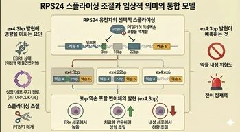 (그림: RPS24 스플라이싱 조절과 임상적 의미의 통합 모델 모식도)