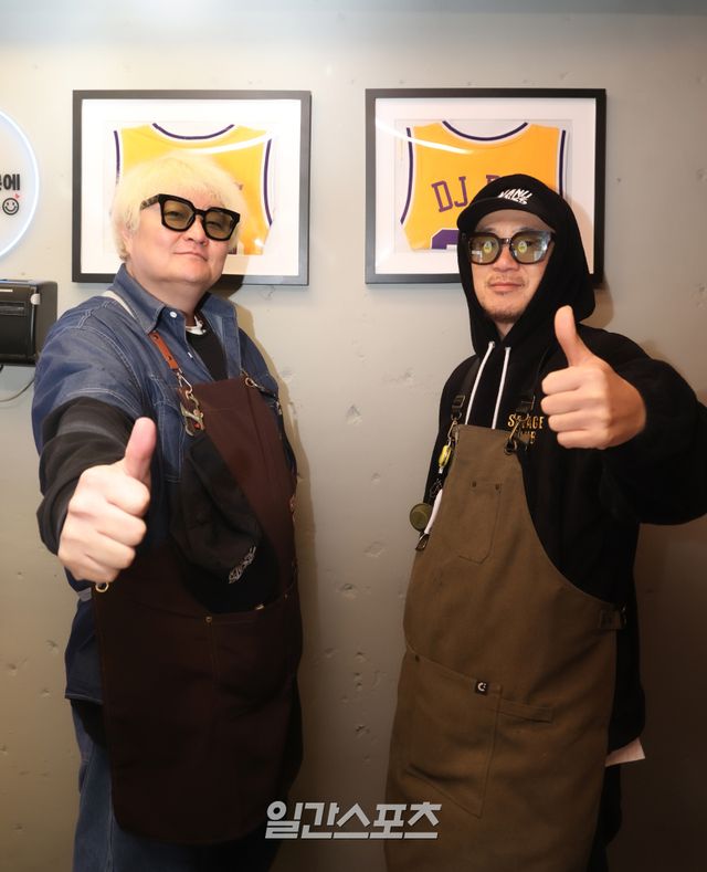 개업한 지 3주 밖에 되지 않았지만 이미 동네 신상 맛집으로 유명해진 서울 연신내 H 곱창집에서 이하늘, 정재용을 만났다. 영업 준비로 분주한 오후 시간 잠시 틈을 내 일간스포츠 인터뷰에 응한 두 사람의 손엔 마이크 대신 고기 집게가 들려 있고, 힙하고 멋스러운 패션은 사장님 시그니처 앞치마로 가렸다. 하지만 선글라스 뒤 두 사람의 눈빛은 어느 때보다 선명하게 빛났다.
