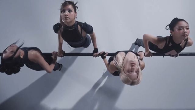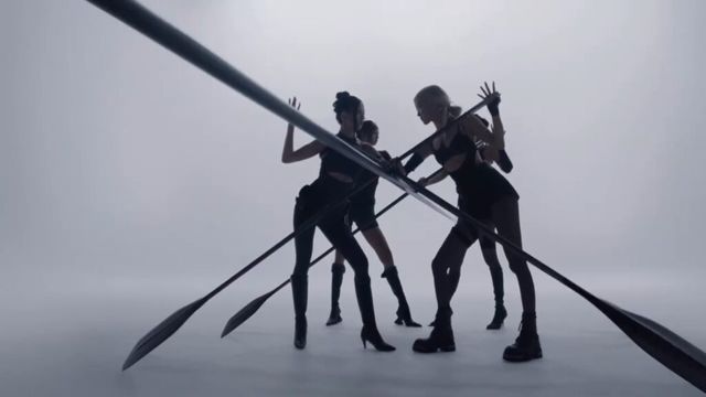 티저의 중심에는 블랙핑크 네 멤버가 자리합니다. 퓨처리스틱한 블랙 컬러의 의상, 유니크한 헤어와 메탈릭한 메이크업 그리고 군더더기 없는 세트. 멤버들은 노를 교차해 X자 형태를 만들고 수직과 수평의 축을 기준으로 완벽한 대칭을 완성하죠. 레일이 가운데 놓인 미니멀한 공간 속 x자로 엮인 노는 뮤직비디오에 조형적 공간감을 더해줍니다.