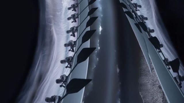 이어 등장하는 보트와 노의 이미지는 흥미롭습니다. 여러 인물이 일사불란하게 노를 젓는 장면은 곧 이어질 ‘출발’의 서막을 보여주는 듯하죠. 동일한 방향으로 뻗어 나가는 팔과 노의 궤적이 만들어내는 하나의 리듬은 개인의 움직임이 모여 거대한 추진력이 되는 구조를 보여줍니다. 이는 블랙핑크라는 팀의 결속을 은유적으로 풀어낸 장면으로 읽히죠.
