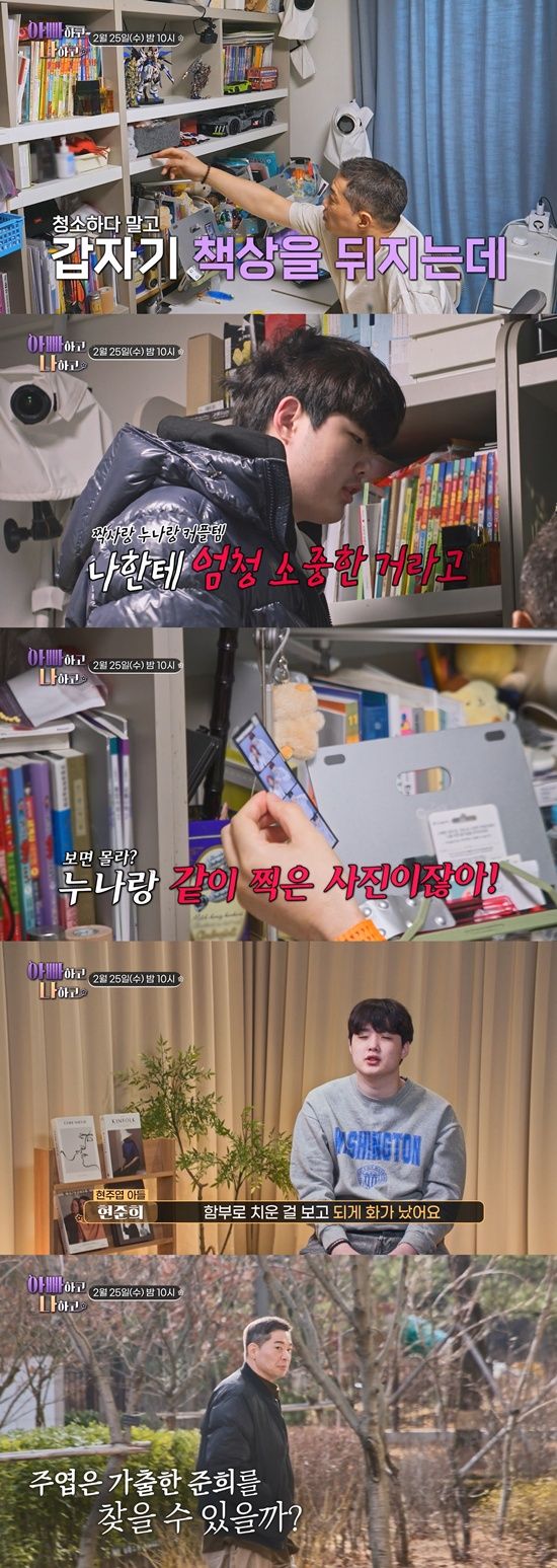 25일 방송되는 TV조선 '아빠하고 나하고 시즌3'에서는 현주엽이 편의점에 간 아들 준희의 방을 정리하다 말고 책상을 뒤지기 시작한다.
