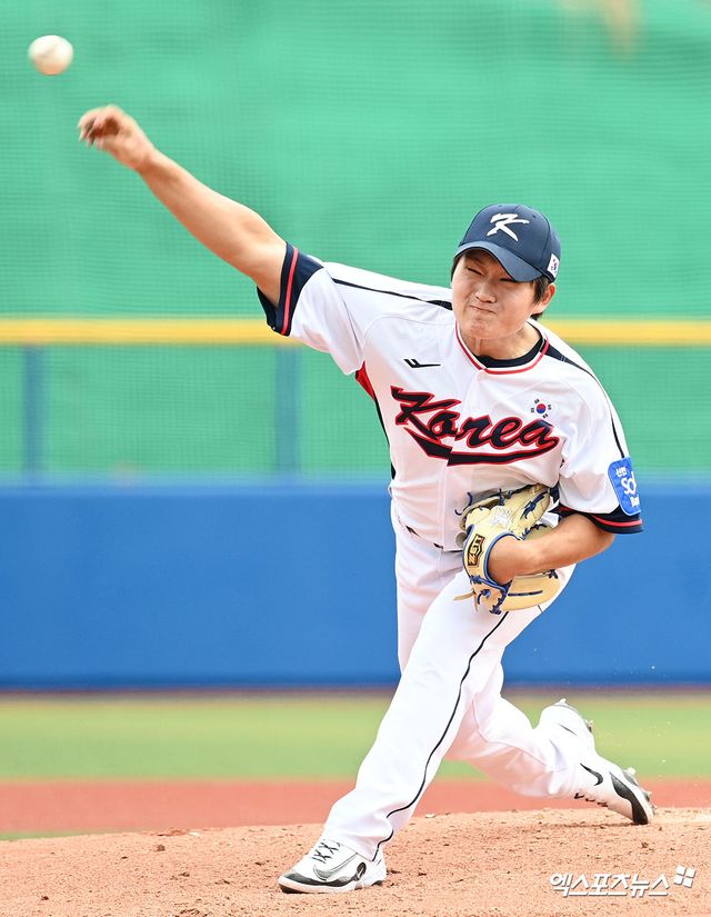 김택연은 다행히 글러브로 데일의 타구를 막은 뒤 자신 앞에 떨어진 공을 깔끔하게 1루 송구로 연결, 아웃 카운트를 잡아냈다. 대표팀 김광삼 투수코치와 트레이너들이 마운드를 방문, 김택연의 상태를 살폈고 부상이 없다는 걸 확인한 뒤 안도했다.