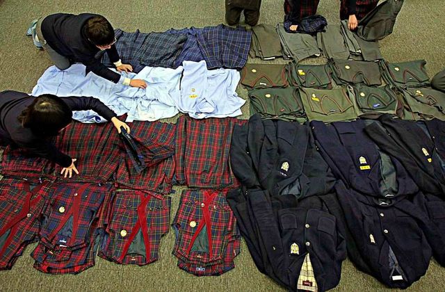 바닥에 펼쳐진 교복들. 자료사진. / 연합뉴스
