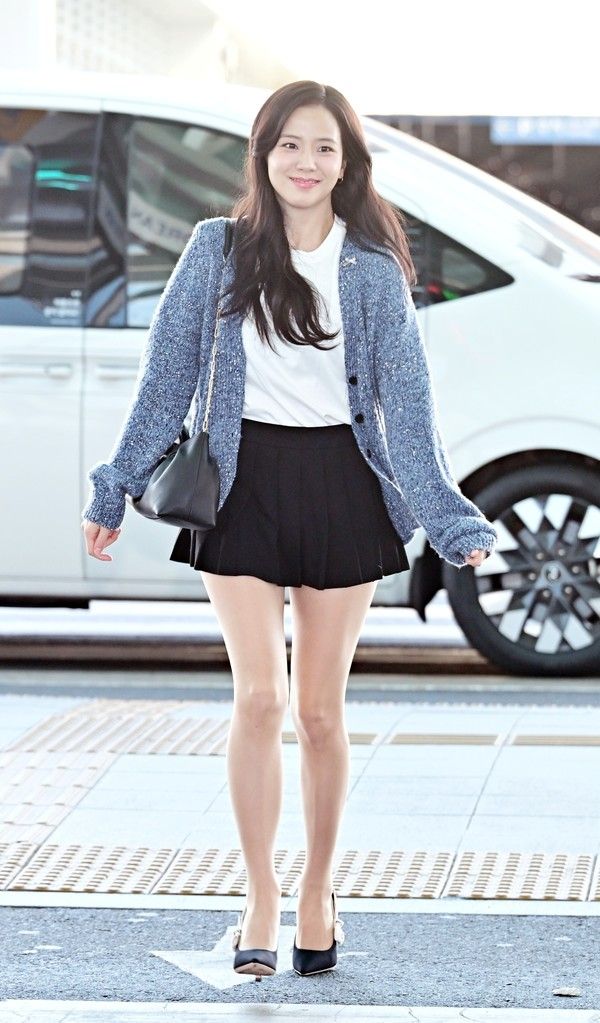 이날 지수는 아침 공항을 환하게 밝히는 사랑스러운 비주얼로 등장했다. 봄 분위기가 물씬 느껴지는 모던하면서도 단아한 공항 패션으로 특유의 우아하고 고급스러운 매력을 드러냈다.