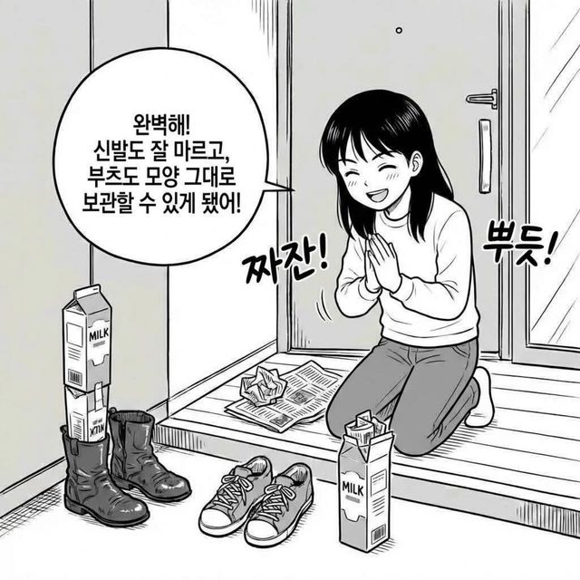 신발에 우유팩을 넣은 모습 / 기사 내용을 바탕으로 제작한 AI 이미지