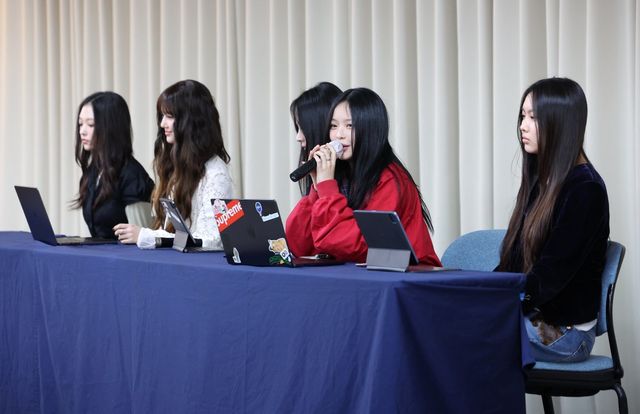걸그룹 뉴진스가 전속계약 해지 관련 기자회견에 참석한 모습. / 공동취재-뉴스1