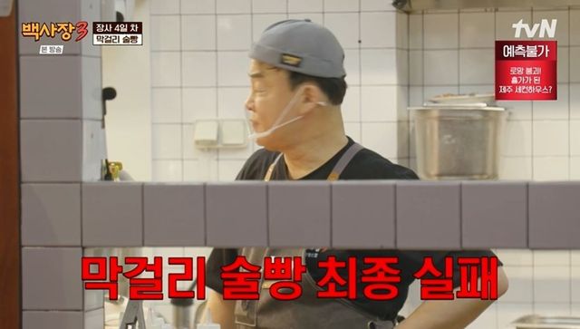 [TV리포트=남금주 기자] 백종원이 막걸리 술빵 만드는데 실패한 가운데, 저녁 장사에서 만족할 만한 성과를 얻지 못했다.