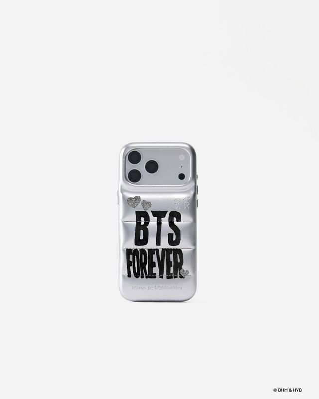 어반 소피스티케이션과 BTS가 처음으로 선보이는 컬래버레이션. 한국적 감성을 담아 BTS 로고를 창의적으로 재해석하고 변형한 첫 시도다. 스페인 발렌시아가 출신 디자이너가 그래픽 디자인에 참여했으며, 5종의 케이스와 1종의 텀블러 라인업으로 구성된다. 핵심 제품인 The Puffer Case® BTS Stickers Black에는 각 멤버를 상징하는 동물 캐릭터 스티커가 포함되어 팬들의 소장 욕구를 자극한다.