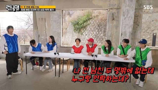 하하는 “네가 그렇게 안 내면 진짜로 너랑 절교할 거다. 뒷담화할 거다”라며 “내가 네 전 남친 알거든? 내가 연락도 하잖아”라고 유치하게 나왔고, 지예은은 “누군데? 전 남친 두 명뿐인데 누구랑 연락하는데”라고 응수했다. 김종국은 지예은에게 “너도 쟤 전여친 알지 않냐”라고 했고, 지석진도 “연락하잖아”라고 거들었다.