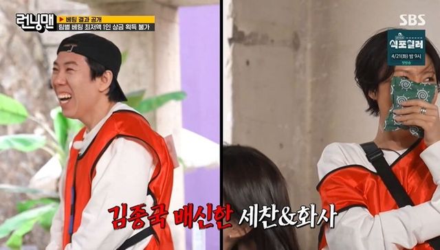 승리 팀인 화사팀도 배신이 난무했다. 김종국이 떠난 사이 만 원씩 내기로 했던 양세찬과 화사가 천 원을 더 내기로 합의한 것. 최저 금액 베팅자인 김종국만 0원을 받는 상황. 김종국은 뒷짐을 지고는 “화사는 그럴 줄 몰랐다. 세찬인 그럴 수 있다고 쳐도. 난 최저라고 해서 두 명 남았을 줄 알았다”라고 충격을 받았다.