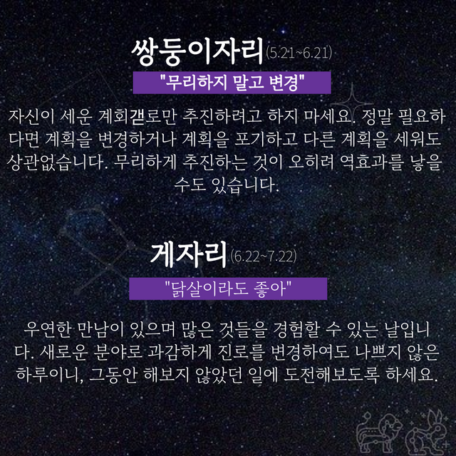 Δ쌍둥이자리 : 무리하지 말고 변경…