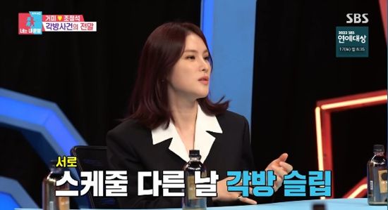 이지혜는 거미에게 조정석과 각방을 쓴 적은 있는지 물어봤다. 거미는 "서로 다음날 일찍 나가야 하는 스케줄일 때. 저도 노래 많이 해야하거나 오빠도 새벽 촬영 나가야 하면 늦게 잠드는 사람이 다른 방으로 조용히 가서 잔 적은 있다"고 했다. 서장훈은 "이 집은 배려다"라며 감탄을 했다.