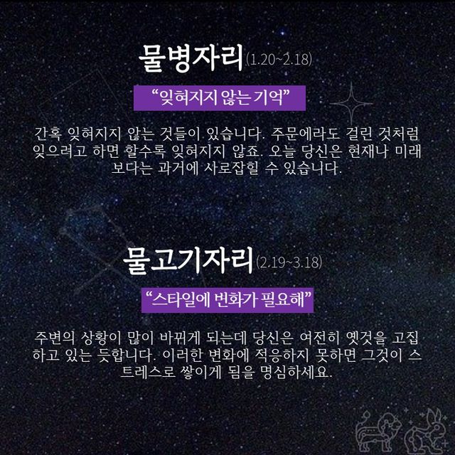 간혹 잊혀지지 않는 것들이 있습니다. 주문에라도 걸린 것처럼 잊으려고 하면 할수록 잊혀지지 않죠. 오늘 당신은 현재나 미래보다는 과거에 사로잡힐 수 있습니다.
