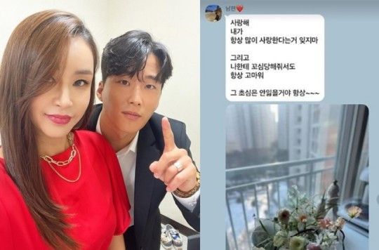 공개된 사진에서 남편 서경환은 "사랑해. 내가 항상 많이 사랑한다는 거 잊지마. 그리고 나한테 꼬심 당해줘서도 항상 고마워. 그 초심은 안 잃을 거야 항상"이라 말했다.