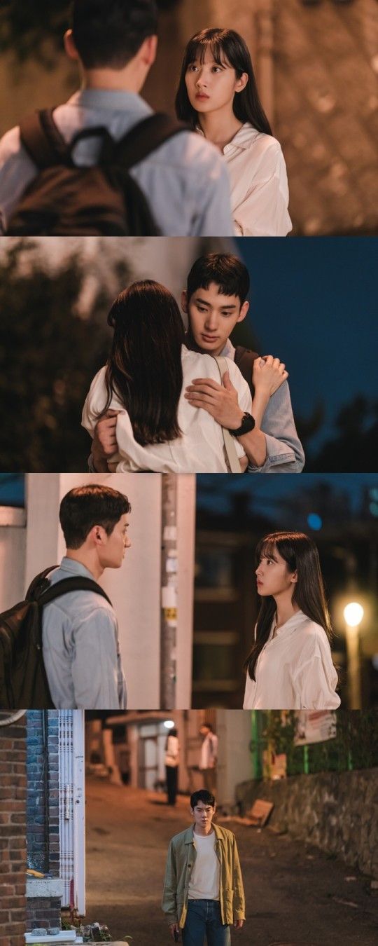 사진 속 안수영과 정종현은 서로를 조심스럽게 안고 있을 뿐 아니라, 눈을 똑바로 마주하며 묘한 분위기를 자아냈다. 반면 두 사람을 지켜보다 아무것도 하지 못 한 채 되돌아가는 하상수의 표정엔 착잡함과 씁쓸함이 녹아있다. 이처럼 늦은 밤 가로등 아래서 밀착한 안수영과 정종현의 모습은 본격적으로 시작될 삼각관계를 예감케 한다. 직진 타이밍을 놓친 하상수는 이 위기를 기회로 만들 수 있을까.