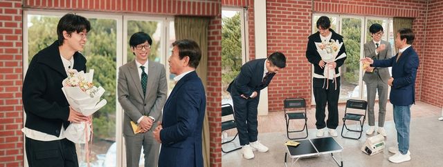 공개된 사진에는 전날 tvN '유 퀴즈 온 더 블럭'에 출연한 축구선수 조규성의 모습이 담겨 있다. 이날 방송에서는 조세호의 아버지이신 조규성 씨가 깜짝 등장해 축구선수 조규성에게 꽃다발을 전달했다.