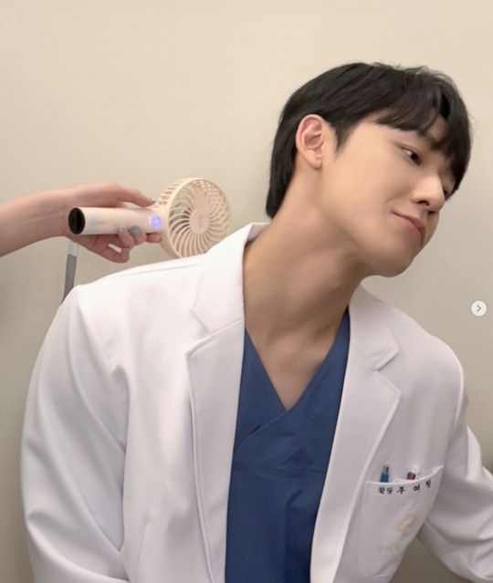 공개된 사진 속 이도현은 의사 가운을 입고 휴대용 선풍기로 바람을 쐬고 있다. 또 다른 사진에서 이도현은 야외에서 한 손을 들어 올리며 사진을 찍는 모습도 담겼다. 이도현은 잘생긴 외모로 팬들의 마음을 사로잡았다.