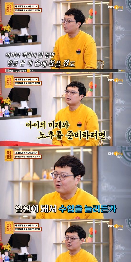 사연자는 "아이가 스무 살이 되면 내가 환갑이다. 지금 이대로 월급 받아서는 안 될 것 같고 현실적인 생각이 들었다. 그때까지 아이를 키우려면 대책이 필요했다. 임원을 달아 큰 돈을 벌든, 사업을 준비하든 방법을 바꿔야겠다고 생각했다"며 "결론이 정년 없는 전문직으로 났다"고 밝혔다.