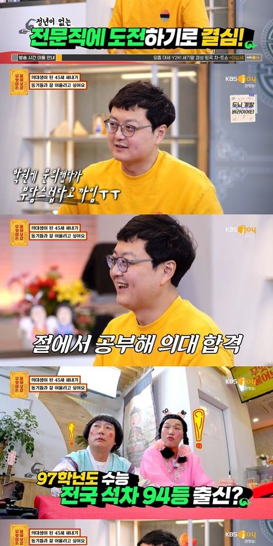 2일 방송된 KBS joy 예능 프로그램 '무엇이든 물어보살'(이하 '물어보살')에서는 IT계열 일을 하다가 수능에 세 번 도전 후 의대에 진학한 곽영호의 이야기가 공개됐다.