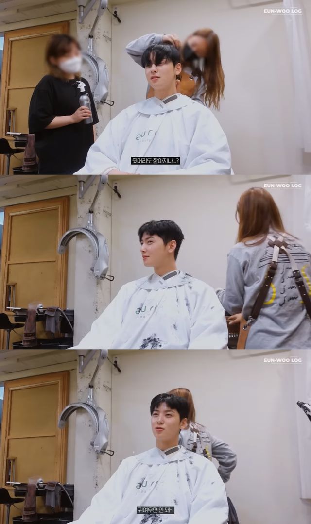 거의 십 몇 년 만에 짧게 머리를 자른다고 밝힌 차은우는 커트가 시작되자 "뒷머리도 짧아지는 건가?"라며 다소 긴장한 듯한 모습을 보였다.
