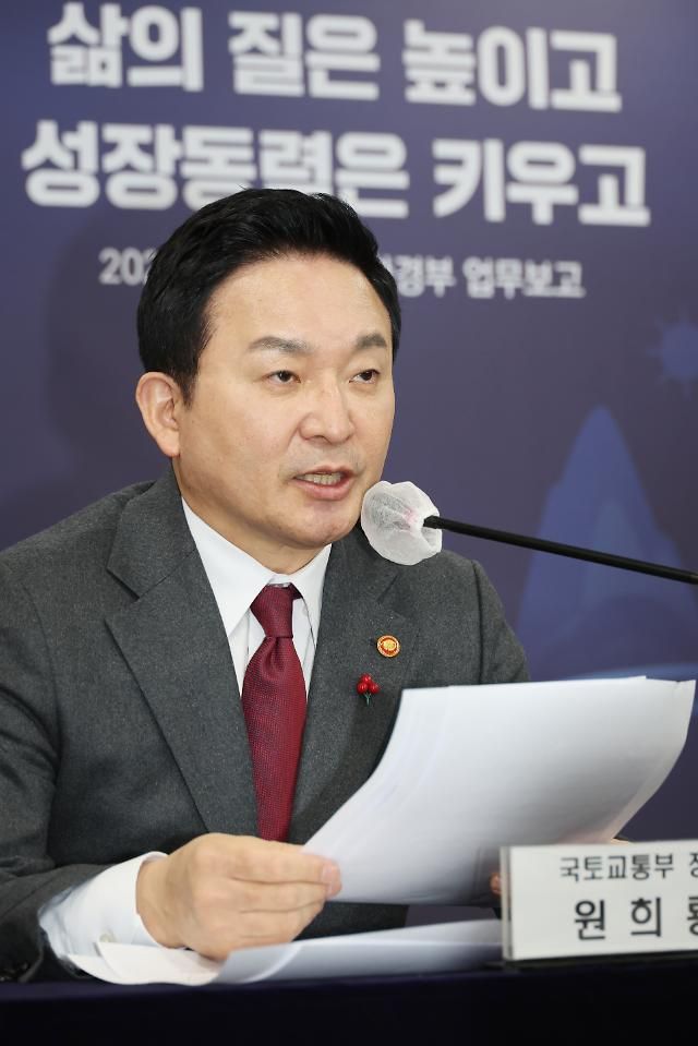 원희룡 국토교통부 장관이 3일 정부서울청사 브리핑실에서 국토교통부 새해 업무보고 후 환경부와 합동브리핑을 하고 있다. [사진=연합뉴스]