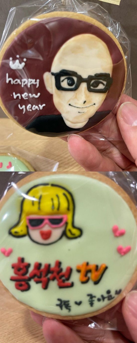 쿠키에는 '2022 연예대상 진짜 대상 홍석천', 'happy new year', '홍석천 tv 구독, 좋아요'라는 문구와 홍석천의 얼굴이 담겨 있어 훈훈함을 자아낸다.