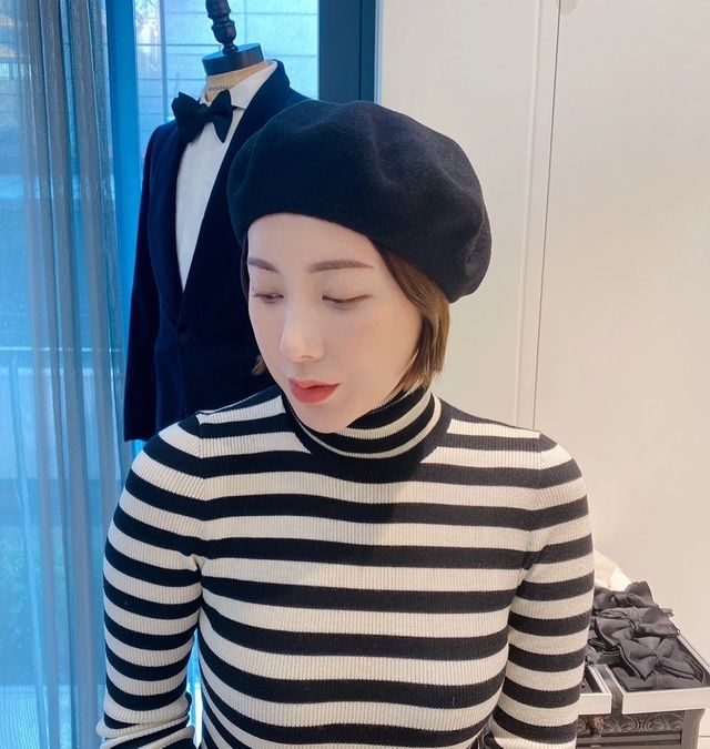 공개된 사진 속 서인영은 어딘가를 내려보며 집중하고 있는 모습이다. 서인영은 블랙 스트라이프 터틀넥과 베레모로 러블리한 룩을 완성했다.
