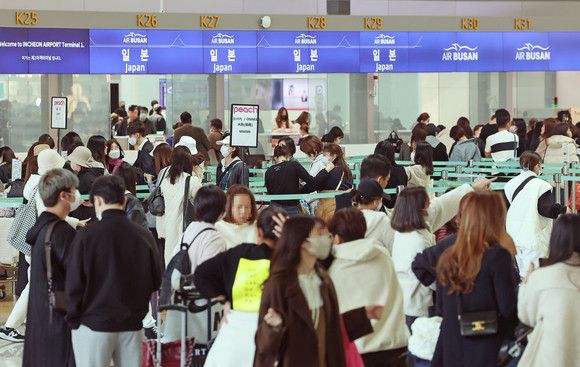 올해 약 두 달 반 기간동안 한국에서 일본을 찾은 여객수가 지난해 한 해 전체 실적을 웃돈 것으로 나타났다. 사진은 인천공항 출국장 모습. ⓒ 연합뉴스