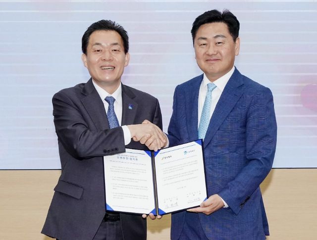 | ▲ 이재준 시장(왼쪽)과 김관영 지사가 협약 후 악수를 하고 있다. |