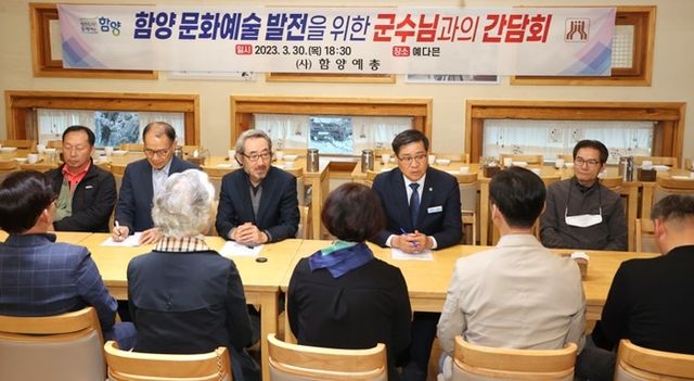 [파이낸셜경제=김영란 기자] (사)한국예술문화단체 총연합회 함양지회는 지난 3월 30일 함양군 관내 식당에서 함양군 문화예술 활성화를 위해 함양군수와의 간담회를 가졌다.