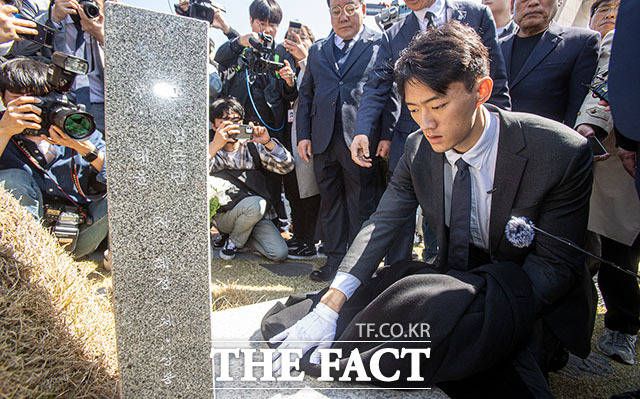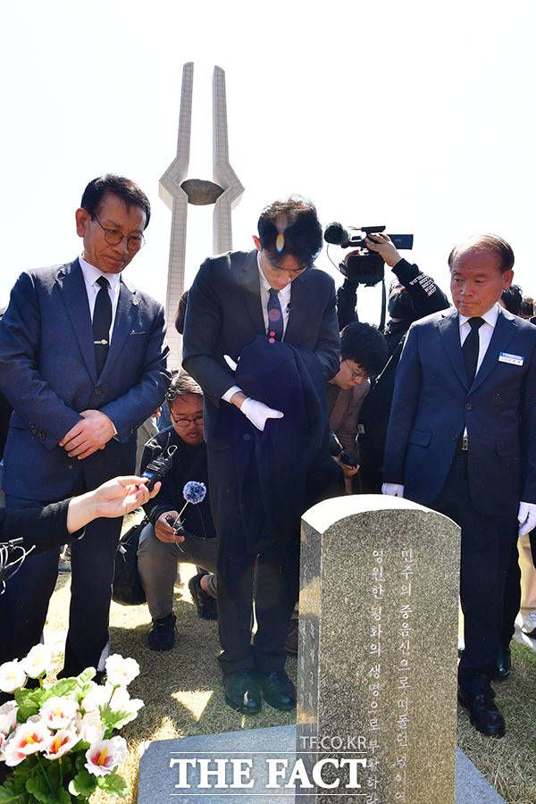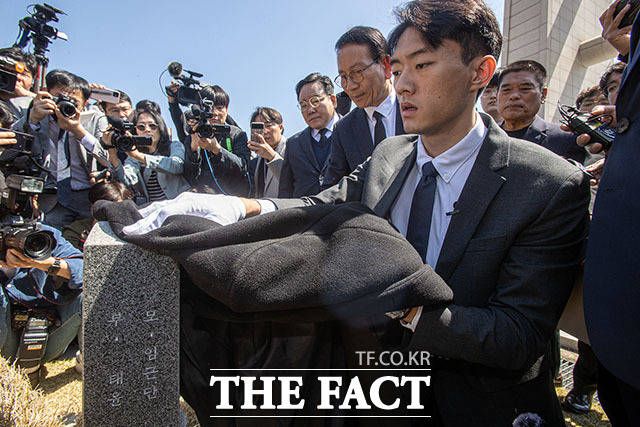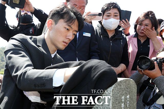 [더팩트ㅣ광주=남윤호 기자] 전직 대통령 고 전두환의 손자 전우원 씨가 31일 오전 광주 북구 국립5.18민주묘지를 참배하고 있다.