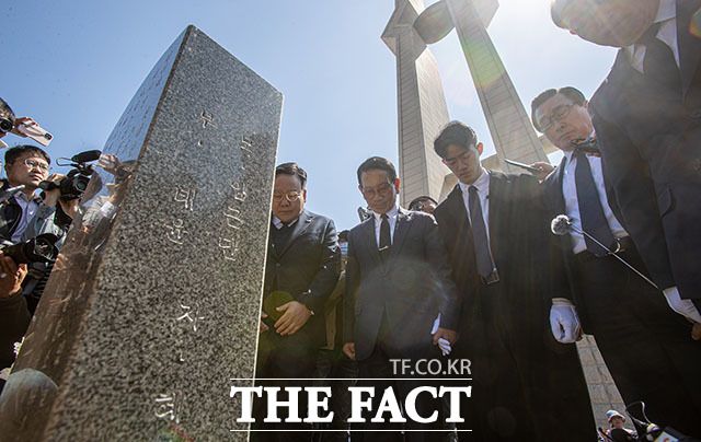 희생 열사들의 묘역 참배한 전우원 씨.