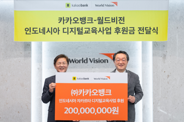 [직썰 / 채혜정 기자] 카카오뱅크는 지난 30일 인도네시아의 디지털 교육사업을 지원하기 위해 월드비전에 2억원을 기부했다고 31일 밝혔다.