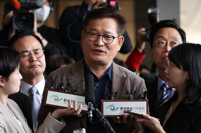 더불어민주당 전당대회 돈 봉투 살포 의혹의 핵심 인물인 송영길 전 민주당 대표가 서울 서초구 서울중앙지검에 자진 출석, 입장문을 낭독하고 있다. 2023.05.02[사진=유대길 기자 dbeorlf123@ajunews.com]