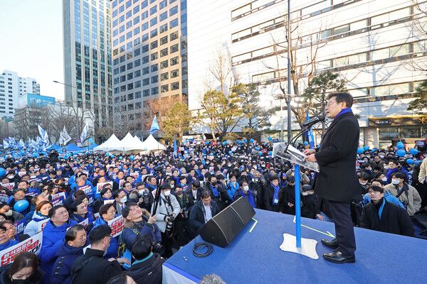 이재명 민주당 대표는 연단에 올라 "난방비 폭탄이 날아들고 있다, 전기요금도 오르고 점심 값도 천정부지인데 유독 국민 일자리는 줄어들고 월급봉투는 얇아지고 있다"며 "윤석열 정권은 무엇을 하고 있나. 재정부족하다고 서민지원 예산을 삭감하고, 부자들 세금은 왜 그렇게 열심히 깎아주는 것이냐"고 따져 물었다.