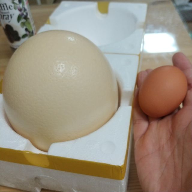 유튜브에 컨텐츠로 종종 등장하는 타조알, 일반 계란과 달리 매우 단단해 아무리 내리쳐도 깨지지 않고 크기 역시 매우 거대합니다.
