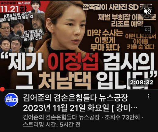이날 방송인 김어준씨가 진행하는 유튜브 방송 ‘겸손은 힘들다’에는 이정섭 차장검사의 처남댁인 강미정씨가 출연해 각족 의혹에 대해 제보했다.