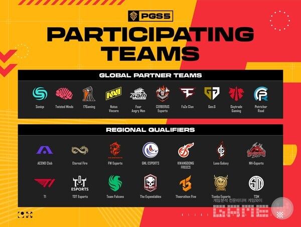 PGS는 전 세계 24개 정상급 프로팀이 최강팀의 영예를 두고 경쟁하는 국제 대회다. PGS 5는 이달 21일부터 27일까지 태국 방콕에 위치한 TVT 그린 파크 스튜디오에서 진행되며, 그룹 스테이지와 파이널 스테이지로 펼쳐진다.