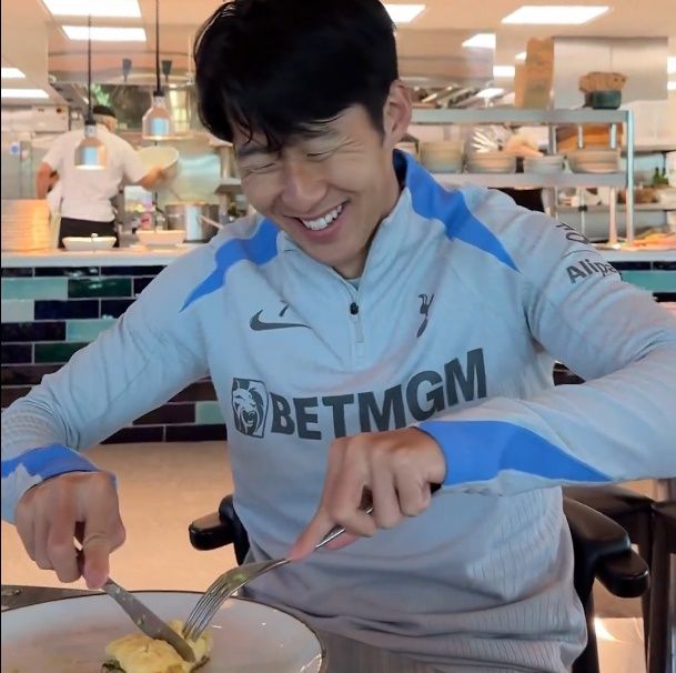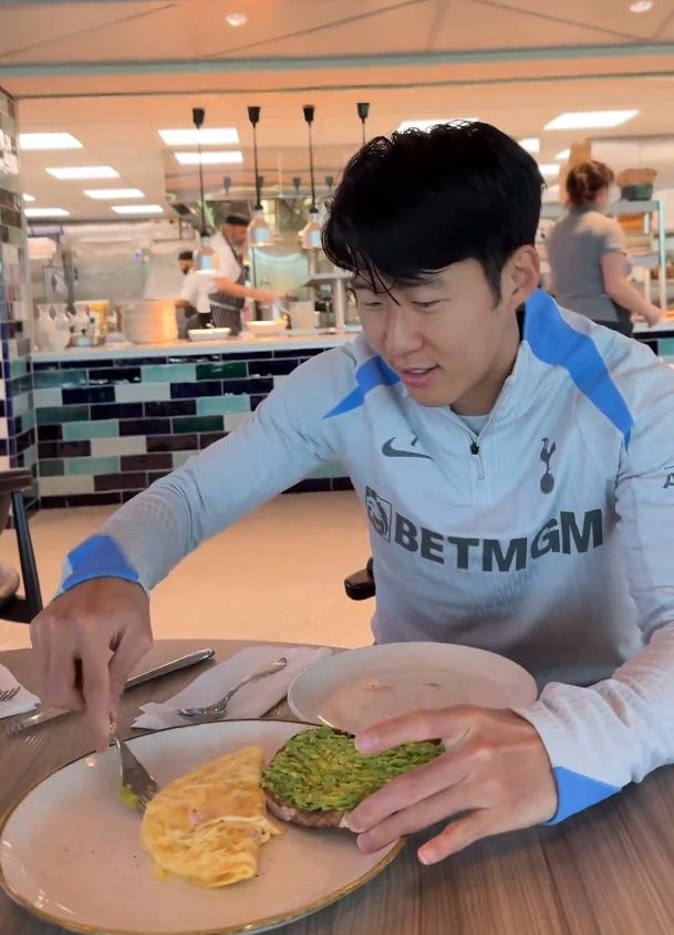 먼저 손흥민은 오전 일찍 구단을 찾아 아침 식사부터 했다. 아침 식사로 무엇을 먹는지에 대해 그는 사워도우빵, 아보카도, 햄 오믈렛을 먹는다고 밝혔다. 또 같은 메뉴를 매일 먹는다고 고백했다.