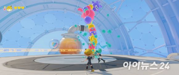 '팝유컴'은 우주를 배경으로한 어드벤처 게임으로, 미지의 생명체 '팝유'의 침입을 막아내는 것을 주된 스토리로 하는 2인 협동 게임이다. 이번 체험판에서는 7개의 다양한 특색을 지닌 스테이지를 즐길 수 있었다.