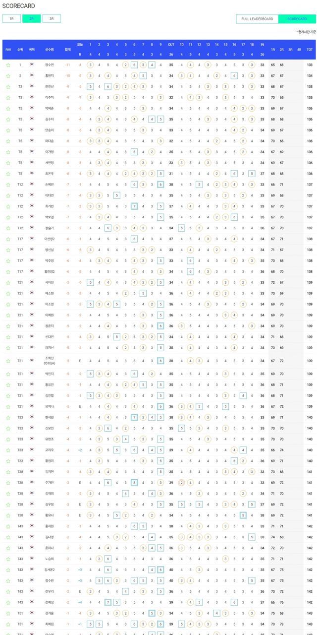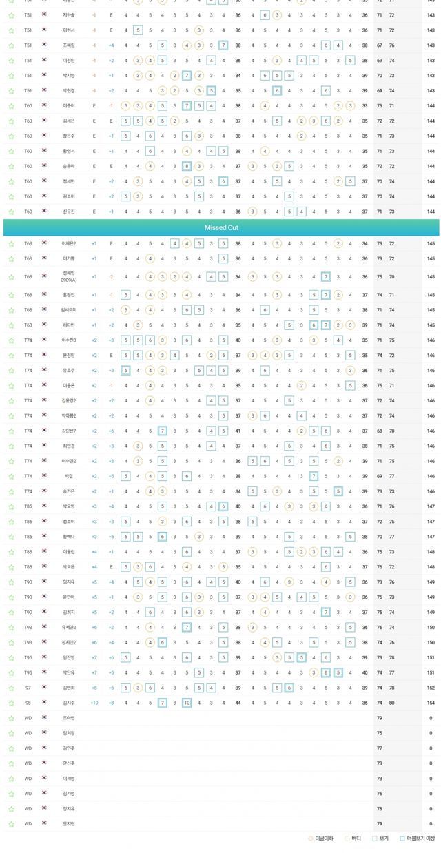 컷탈락 T68.이채은2-홍정민허다빈 +1, T74.이수진3-문정민-이동은-김민선7-최민경-박결 +2, T85.박도영 +3, T90.임지유 +5, T95.임진영-박단유 +7.