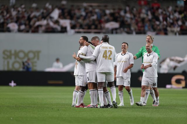 | 20일 오후 서울월드컵경기장에서 열린 2024 넥슨 아이콘 매치에서 야야 투레가 첫 골을 터트린 뒤 기뻐하고 있다. 사진=연합뉴스 |