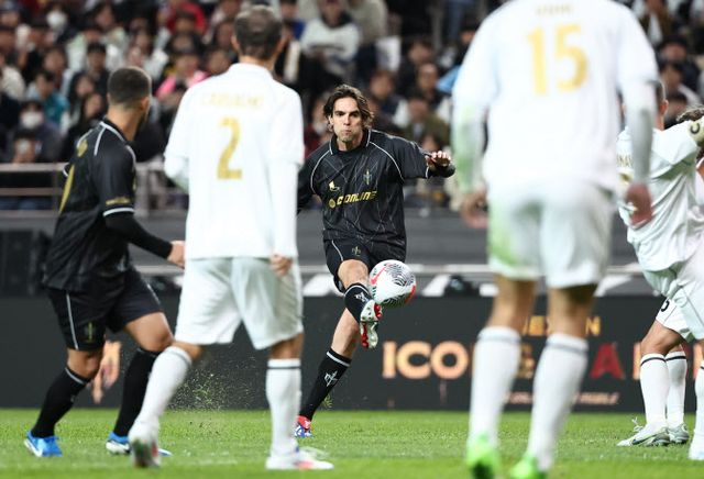 | 20일 오후 서울월드컵경기장에서 열린 2024 넥슨 아이콘 매치에서 카카가 슛을 하고 있다. 사진=연합뉴스 |