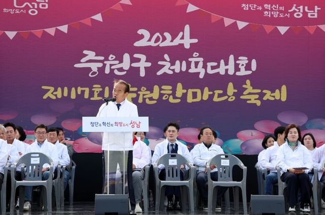 한편, 중원구 체육대회 및 중원한마당축제 통합추진위원회가 주최하고 구가 후원한 이날 행사는 11개 동별 대표 선수단 74명이 참여한 체육대회와 각 동을 대표하는 11팀의 구민 노래자랑 등이 열리는 한마당 축제로 구성됐다.