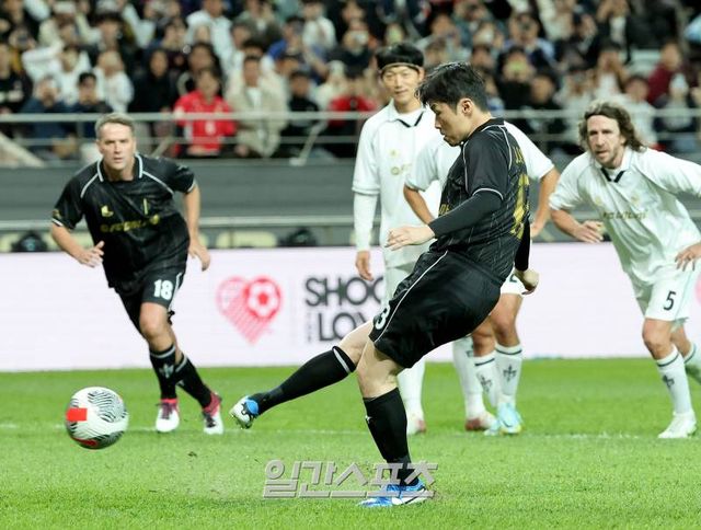 하지만 이날은 달랐다. 축구계 전설들이 대거 출전한 아이콘 매치에서, 박지성은 팀이 0-4로 뒤진 후반 막바지 이천수와 교체돼 그라운드를 밟았다. 그는 골키퍼 임민혁 상대로 PK 골에 성공했다.