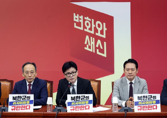 [아이뉴스24 유범열 기자] 국민의힘은 21일 북한의 러시아-우크라이나 전쟁 파병에 대해 한목소리로 비판하며 국회 차원의 규탄 결의안을 추진하기로 했다.