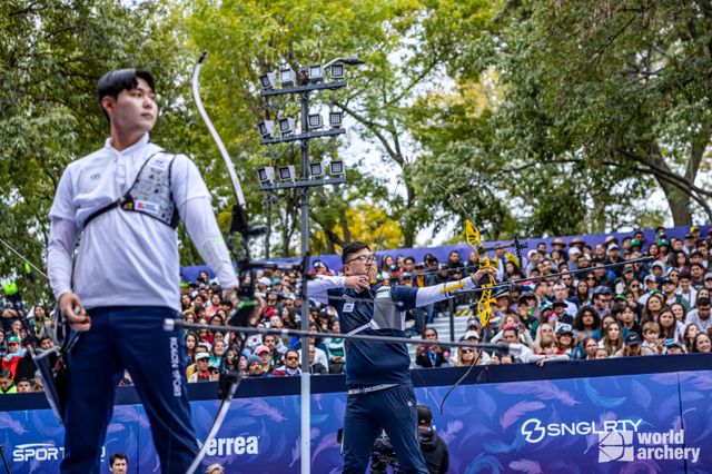 월드컵 랭킹 포인트 1위로 전체 1번 시드를 받은 김우진은 8강에서 토마스 치로(프랑스)를 7-3으로 꺾었고, 마티아스 그란데(멕시코)도 6-4로 꺾으며 대회 결승에 선착했다. 또 2번 시드를 받은 이우석도 봄마데바라(인도)와 마커스 달메이다(브라질)를 각각 6-4로 꺾으며 결승에 올랐다.